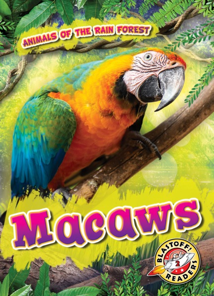 Macaws are among the most vibrant birds in the rain forest! Their colors help them blend in among bright fruits and flowers. In this low-level text, readers will explore how macaws’ bodies and behaviors equip them to survive in their environment. Labeled photos help illustrate the text, and special features show off the range, adaptations, and diet of these bright birds. This colorful book will help beginning readers soar!